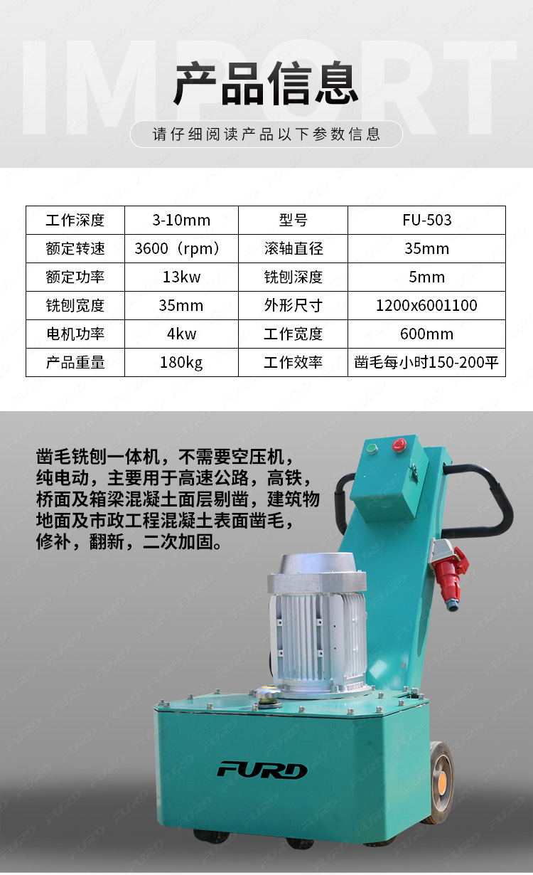 銑刨鑿毛一體機同時具備了銑刨機和鑿毛機這兩個機器設(shè)備的功能,不但效率高而且為您節(jié)省費用,提高工作效率!該機器可以用于高速公路、高鐵、橋面及箱梁混凝土層剔鑿,建筑物地面及市政工程混凝土表面鑿毛、修補、翻新、二次加固。